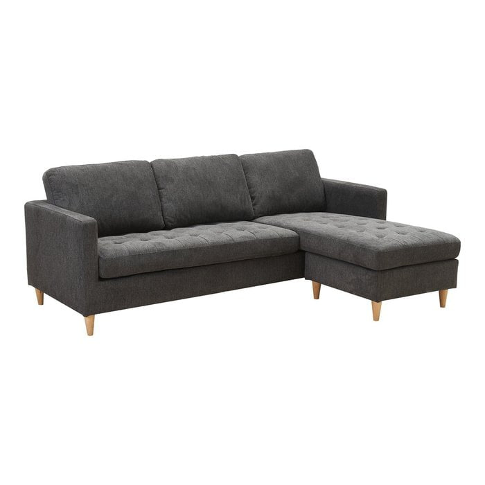 Le canapé Mils est une pièce élégante et polyvalente dotée d'un revêtement gris foncé et de pieds en bois naturel. Sa caractéristique remarquable est la chaise longue mobile, permettant une configuration flexible dans n'importe quel espace de vie. Profitez à la fois du confort et du design moderne avec ce canapé adaptable.