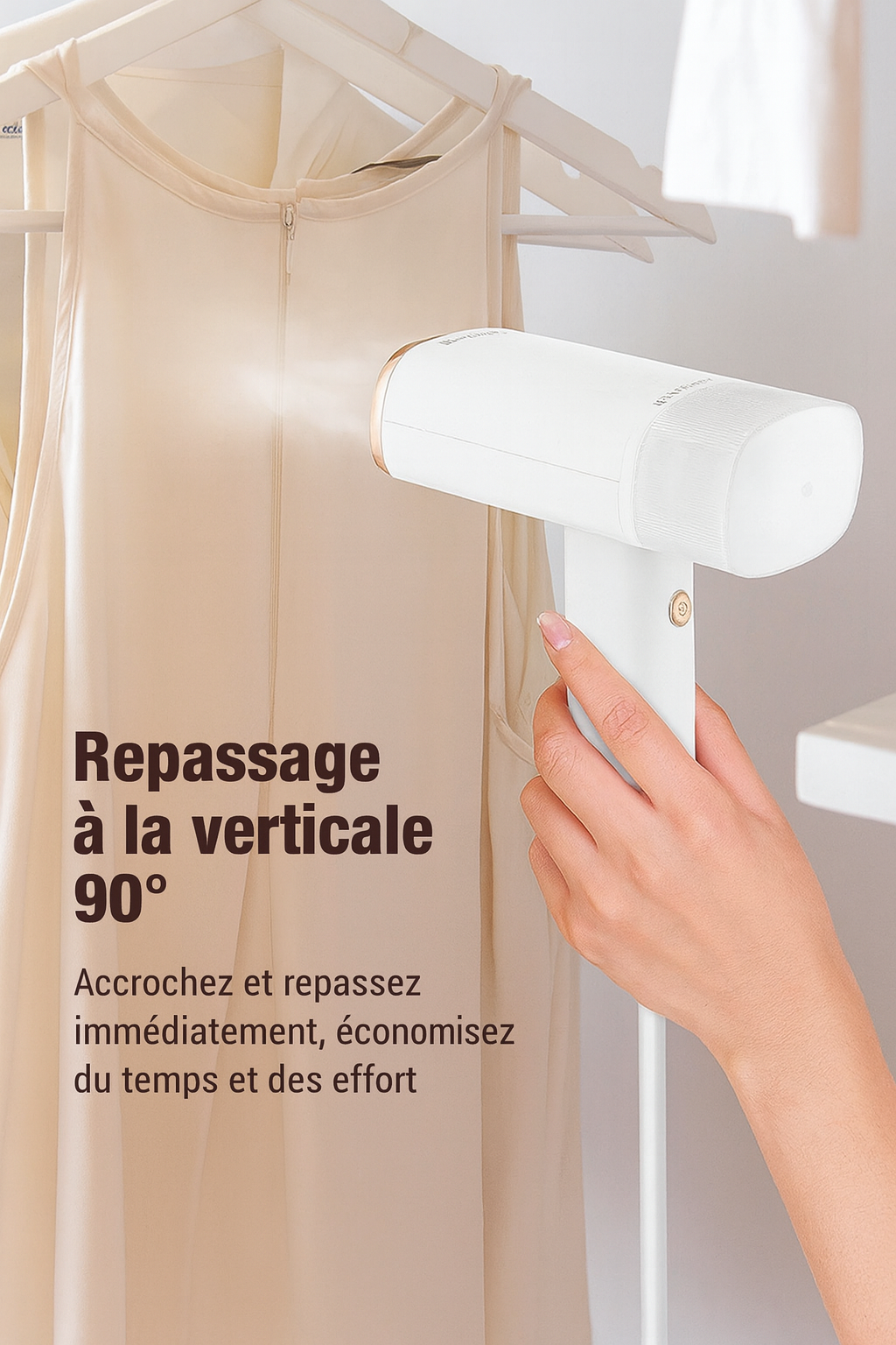 Sans planche à repasser – Utilisation verticale facile, directement sur cintre.