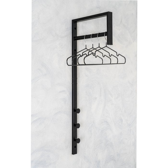 Ce portant à vêtements Trento offre une solution compacte et pratique pour suspendre les vêtements. Fabriqué en métal noir, il est idéal pour les petits espaces comme les chambres, les couloirs ou les buanderies.